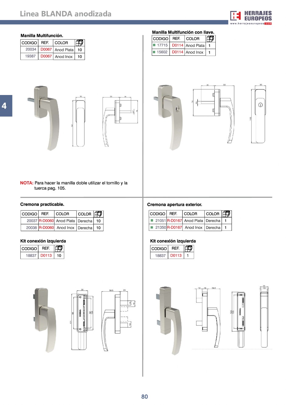BLANDA (ANODIZADO) - CATÁLOGO ALUMINIO HERRAJES EUROPEOS 2022