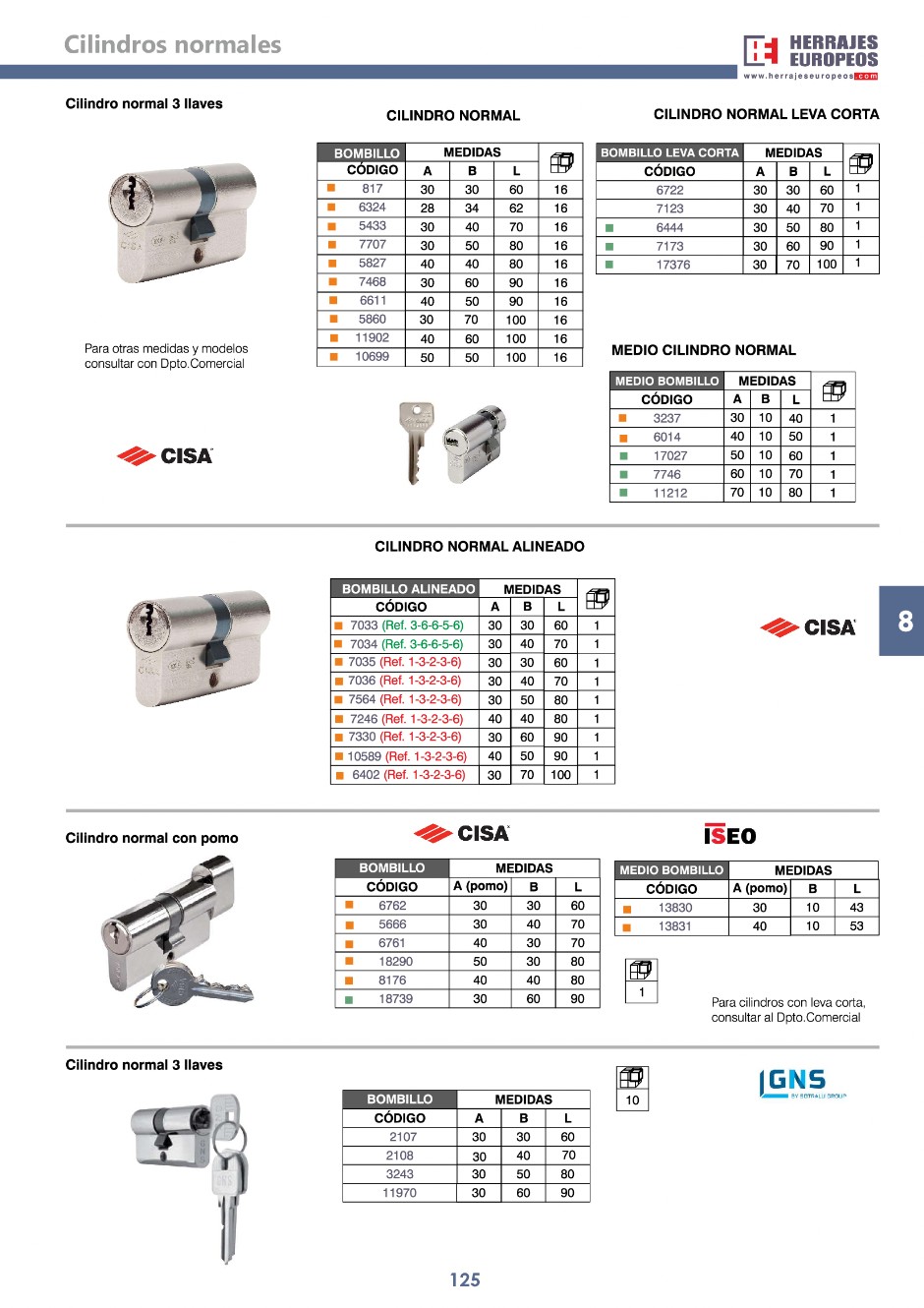 CILINDOS/BOMBILLOS - CATÁLOGO ALUMINIO HERRAJES EUROPEOS 2022